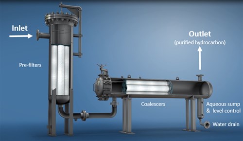 FIG. 7. Horizontal liquid–liquid fiber-bed coalescer system with pre-filter.