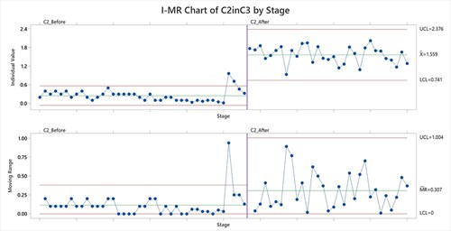 - Before APC (2022–2023): The C2 concentration was 0.21% (well below the specification limit of 2%).