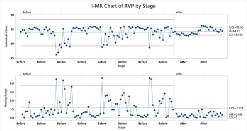 FIG. 3. I-MR chart of condensate RVP after implementing the APC systema.