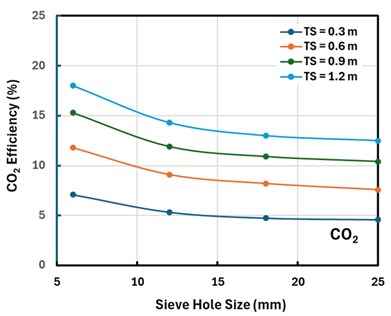 FIG. 2. The effect of tray parameters on CO2 efficiency.