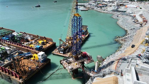 Onshore crews remain focused on backfilling, grading, concrete placements, rock scaling, and advancing the onshore mooring casings for the floating storage tank. To support dust control efforts, treated water is being actively reused on-site, an approach that aligns with the project’s commitment to minimizing environmental impacts.