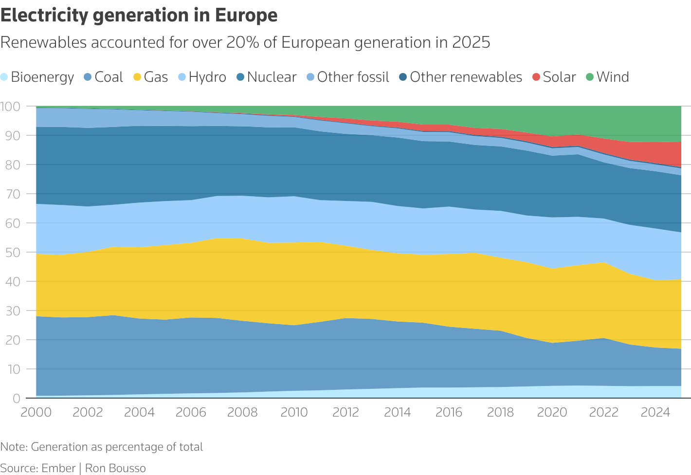 Wind power has long been the cornerstone of Northern Europe’s strategy to slash its fossil fuel dependency, with onshore and offshore wind generating 19% of EU electricity in 2025, according to industry group WindEurope. Yet the region currently operates only about 37 GW of offshore wind across 13 countries, meaning the planned 100 GW expansion would profoundly reshape Europe’s power market.