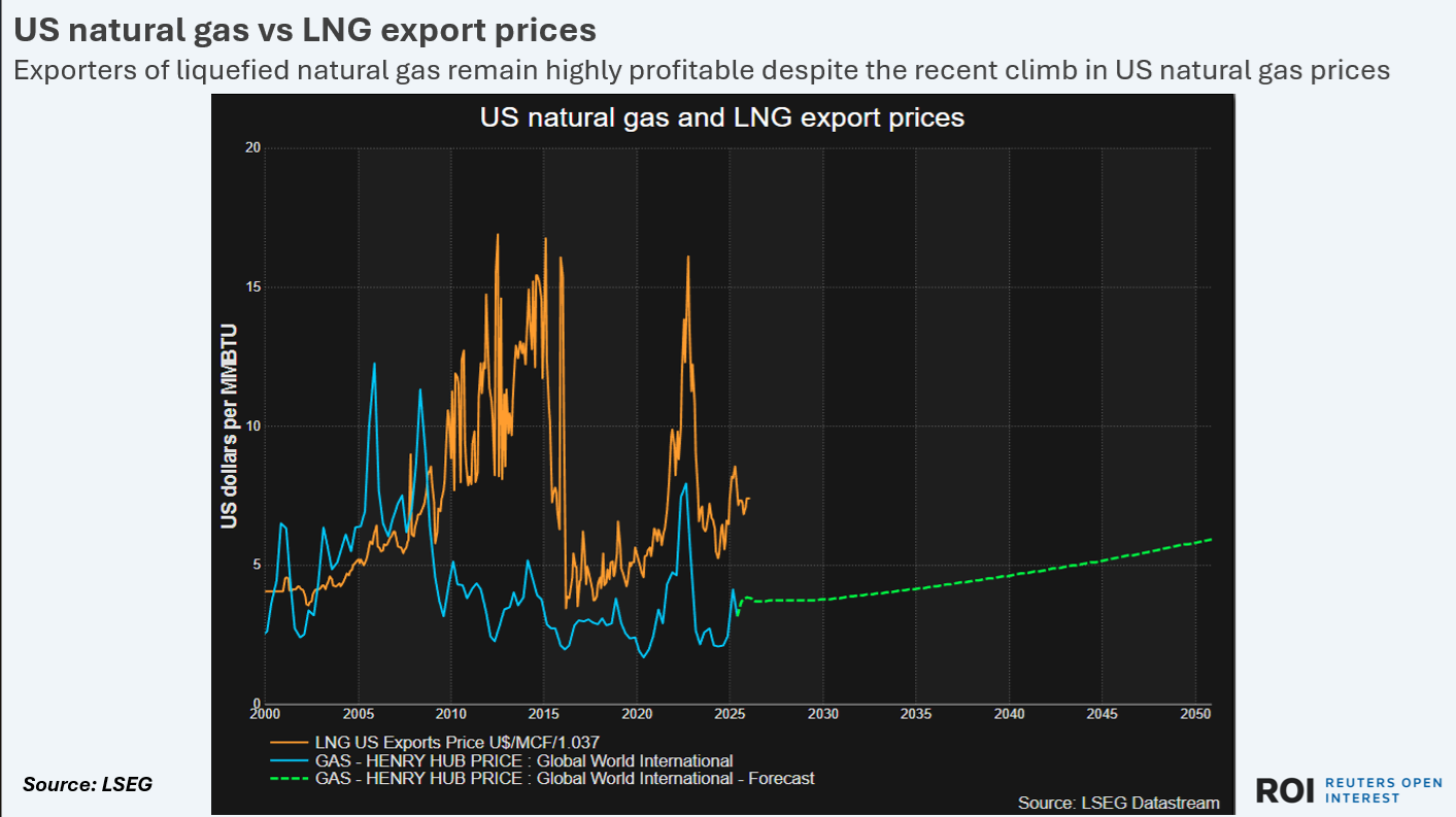 The U.S. LNG export tally was 25% higher than in the same period of 2024, and accompanied a 61% rise in the benchmark U.S. natural gas price - the Henry Hub spot price - last year.