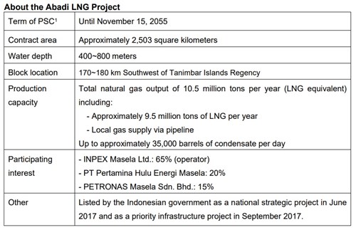 INPEX granted environmental approval for Abadi LNG project from Indonesian government