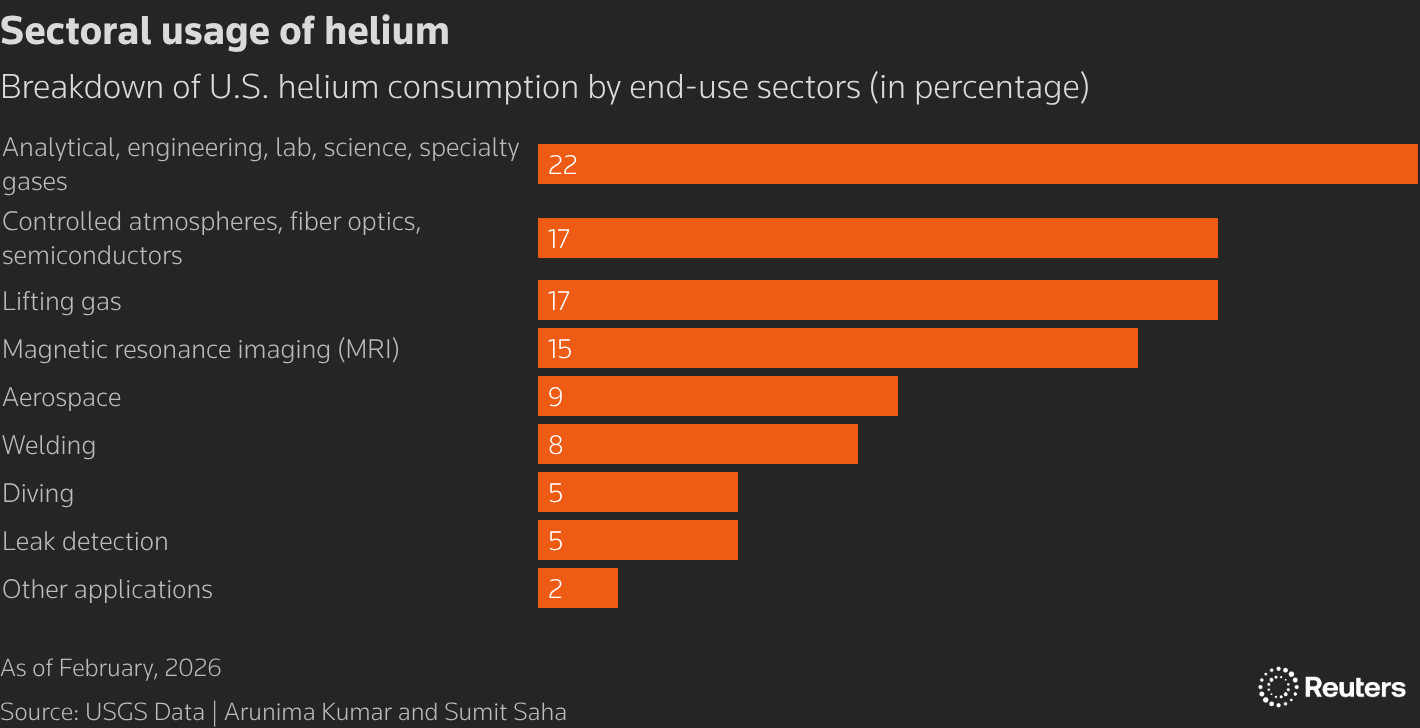 Disruptions to Qatar's natural gas processing from the Iran war have driven helium prices sharply higher, exposing the fragility of a small but critical market that supports industries from semiconductors to medical imaging.